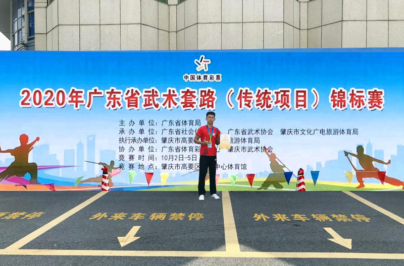 10月3至5日,由广东省体育局主办的广东省武术套路(传统项目)锦标赛在肇庆市高要体育中心举行,我校2018级社会体育系学生郑健平在这场“武林之争”中,夺得成年组传统南派拳一等奖,同时夺得成年组传统南长派器械二等奖的好成绩。
