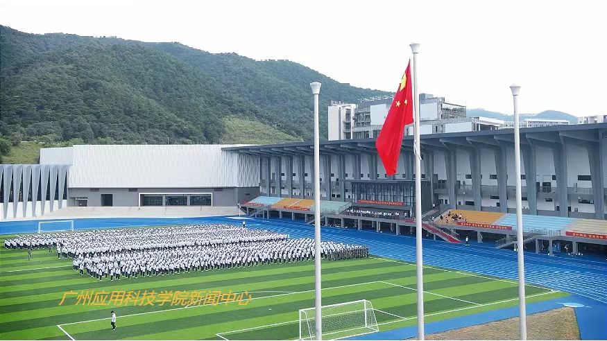 立足大湾区,培养高素质应用型人才;站在新起点,建设高水平应用型大学。在铿锵有力的口令下,国旗护卫队队员们迈着整齐划一的步伐护送国旗入场。鲜艳的五星红旗伴随着庄严的国歌缓缓升起,全体师生向国旗行注目礼,唱国歌。
