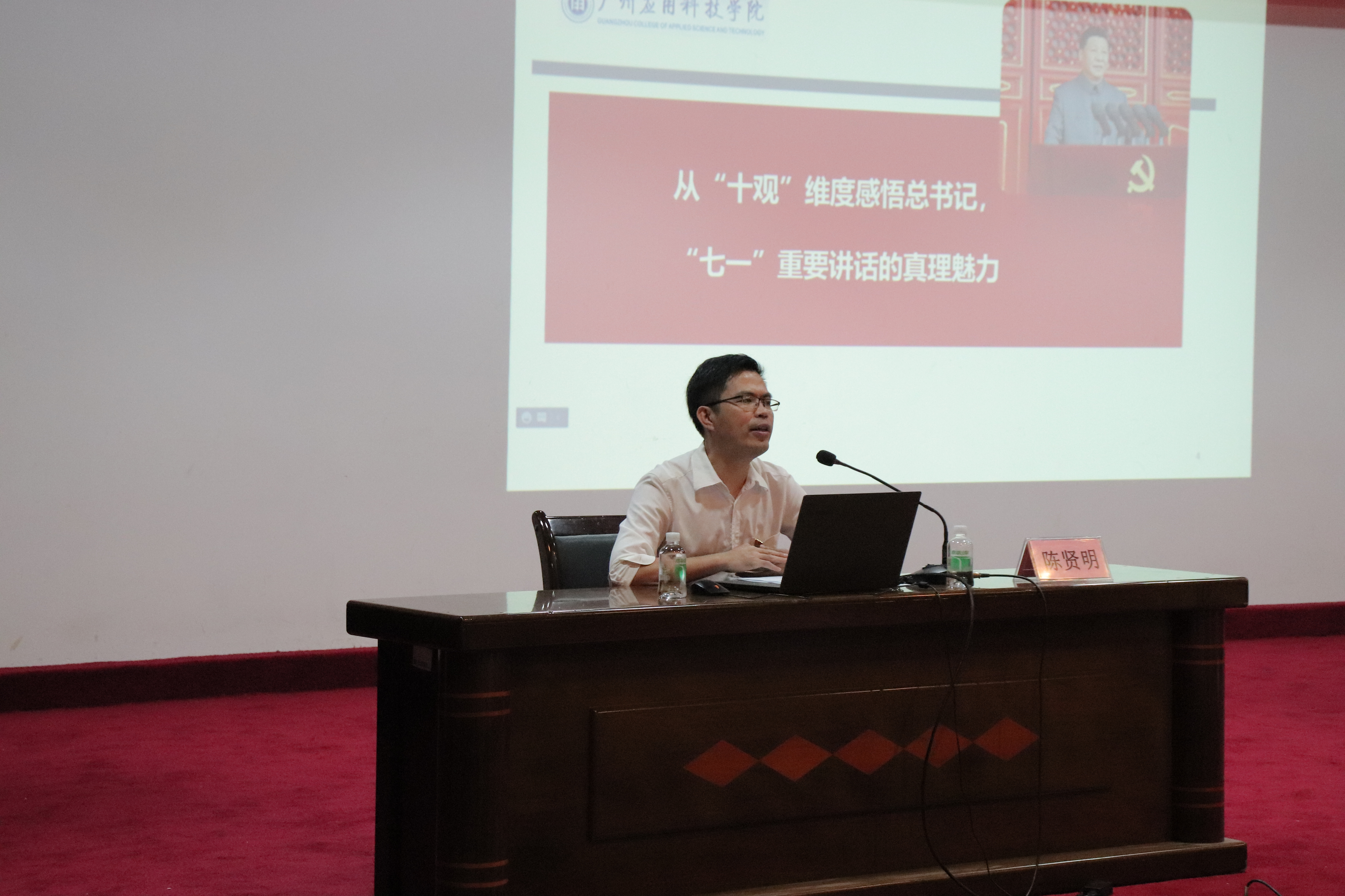 11月4日晚,校党委组织部陈贤明以《深入学习‘七一’重要讲话精神,传承红色文化血脉》为题讲授第二堂党史学习教育专题党课。陈部长从“学习习近平总书记‘七一’重要讲话精神”“传承红色文化血脉”“理论联系实际,发挥党员模范带头作用”三部分展开,他从“十观”维度感悟习近平总书记“七一”重要讲话的真理魅力,他结合时政热点旁征博引,深入解读习近平总书记“七一”讲话重要精神;他指出,青年人要坚定理想信念,弘扬红色文化,磨砺意志品格,守护好建设好红色江山,让红色薪火代代相传。他号召大家要以党员的标准严格要求自己,自觉在思想上、学习上、工作上、生活上充分发挥先锋模范带头作用!