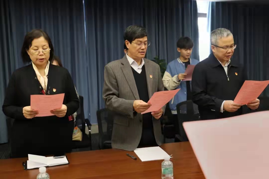 ▲校长助理欧仕身带领广州校区师生代表参加“宪法晨读”活动。