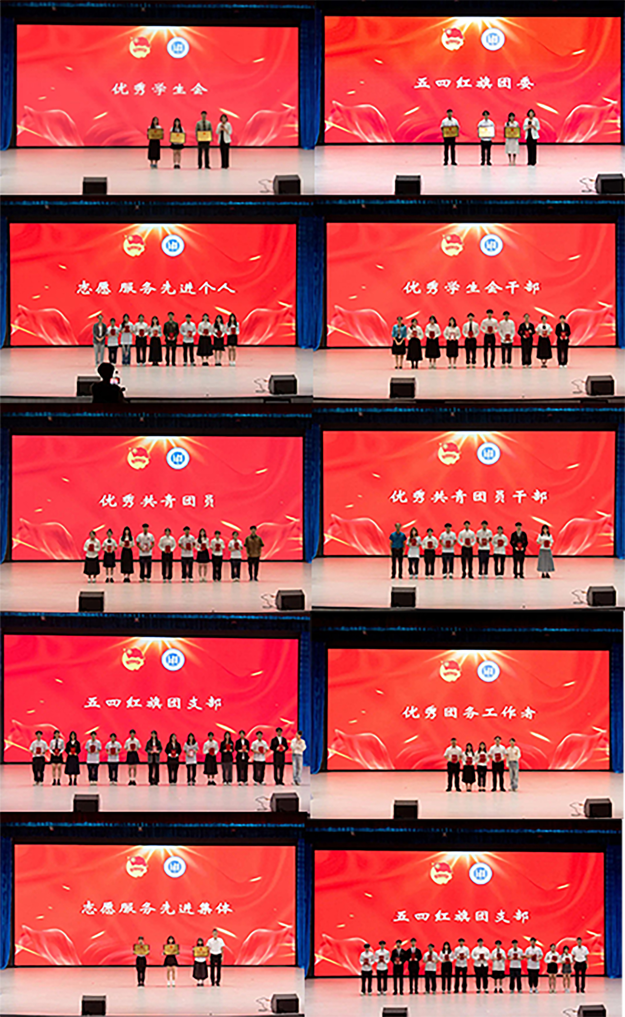 本次晚会对过去一年共青团工作的总结,对一批先进集体和个人的表彰奖励,激励和引导广大青年踔厉奋发、砥砺前行。校团委书记郭振宣读表彰文件,共青团广州应用科技学院委员会决定授予法政学院团委等3个集体“广州应用科技学院五四红旗团委”称号,授予计算机学院21级计算机科学与技术4班团支部等28个集体“广州应用科技学院五四红旗团支部”称号,授予体育科技学院学生会等3个集体“广州应用科技学院优秀学生会”称号,授予文学与传媒学院等3个集体“广州应用科技学院志愿服务先进集体”称号,授予王锐珠等4名同志“广州应用科技学院优秀团务工作者”称号,授予黄龙辉等173名同学“广州应用科技学院优秀共青团干部”称号,授予林志豪等226名同学“广州应用科技学院优秀共青团员”称号,授予黄倚琪等57名同学“广州应用科技学院优秀学生会干部”称号,授予黄琼娴等270名同学“广州应用科技学院志愿服务先进个人”称号。(具体名单见表彰文件)