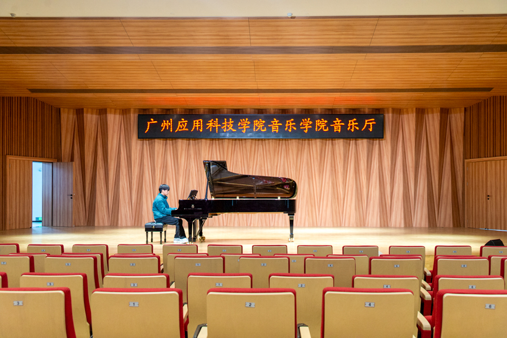 在全速发展的广州应用科技学院,正以高标准、高起点的姿态,书写着“为党育人、为国育才”的新篇章。近日,随着配备施坦威D-274演奏级三角钢琴的入驻,能容纳325人的现代化音乐厅即将投入使用。此外,学校今年新建的专业琴房、数码钢琴室、大型实训排练厅、大型舞蹈教室等一批教学实践场地已全面投入使用,我校通过不断优化教育资源与学习环境,为音乐学专业师生提供实践与学习的重要场所,更是高雅艺术深入校园、滋养学生心灵的又一力证。