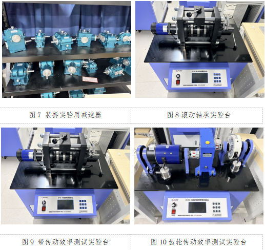 核心设备:装拆实验用减速器(8种类型)、滚动轴承实验台、带传动效率测试实验台、齿轮传动效率测试实验台、测绘用齿轮减速器模型