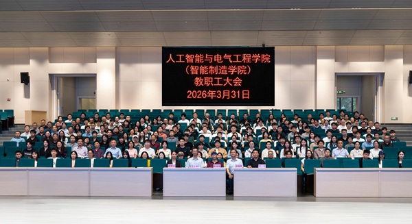 2026年3月31日下午,人工智能与电气工程学院(智能制造学院)在图书馆三楼小礼堂召开本学期第一次教职工大会。院长解成俊、党委书记余晓锣等院领导及全体教职工参会,书记余晓锣主持会议。