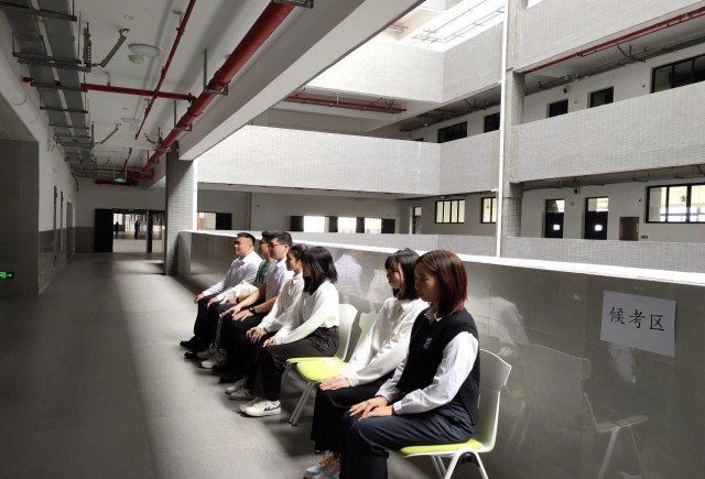 (同学们在候考区静候比赛)