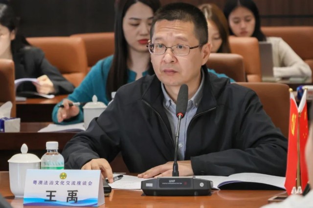 粤澳法治文化交流座谈会由全国人大常委会澳门基本法委员会委员、澳门法联会副理事长兼秘书长王禹主持。