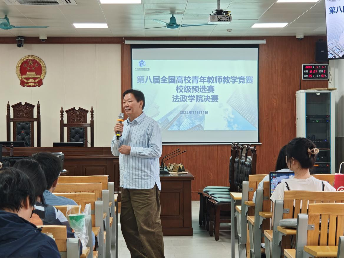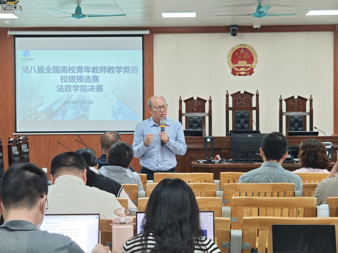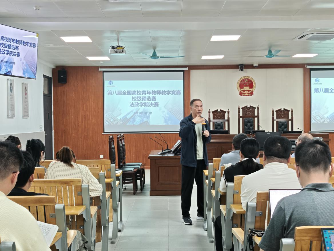为进一步加强青年教师队伍建设,深化教育教学改革,2025年11月11日下午第八届全国高校青年教师教学竞赛法政学院预选决赛在博雅楼S3-501室成功举办。此前的院级初赛中,48位青年教师同台竞技、各展所长,展示了新时代法政教师积极风貌和良好的教学风采。本次决赛的10位青年教师凭借扎实的教学功底、新颖的教学设计和亮眼的现场表现脱颖而出,站上决赛舞台,学院领导、骨干教师及多位教师到场观摩。