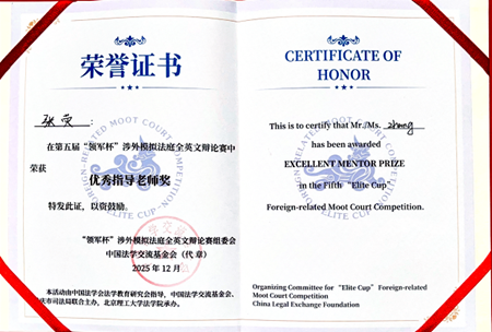 “领军杯”涉外模拟法庭辩论赛是旨在选拔和培养高端涉外法治人才的重要国家级专业赛事。我校代表队作为首次参赛队伍,在与众多传统强队的较量中稳定发挥,最终取得三等奖的佳绩。这一成绩既是对参赛团队辛勤付出的回报,也是我校持续推进法学教育教学改革、深化产教融合、培养高素质应用型法治人才的有效印证。