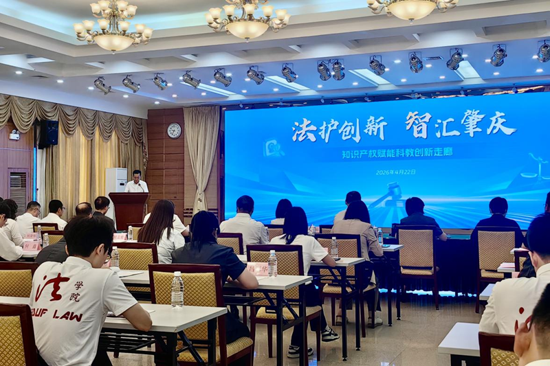 我校法政学院应肇庆市中级人民法院的邀请,由法政学院安雪梅院长率产学研助理徐健兴老师、科研助理周艺文老师、诉讼法教研室主任刘佳轩老师、刑法教研室何鑫老师以及10名法律系学生代表,出席了2026年4月22日在肇庆高新区管委会会议中心举办的 “法护创新 智汇肇庆 —— 知识产权赋能科教创新走廊” 知识产权主题活动。