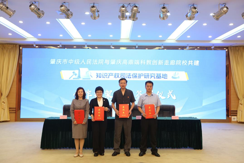 肇庆市中级人民法院党组书记、院长陈洪浩在致辞中指出,此次合作是落实肇庆高端科教创新走廊建设三年行动方案的具体举措,旨在以法治之力助推创新发展,以 “签约 + 对话” 双轮驱动,畅通产学研用协同创新通道。在开放日活动现场,肇庆市中级人民法院与广州应用科技学院等三所高校共同签署《关于共建知识产权司法保护研究基地的合作框架协议》,标志着四方合作迈入机制化、常态化新阶段。
