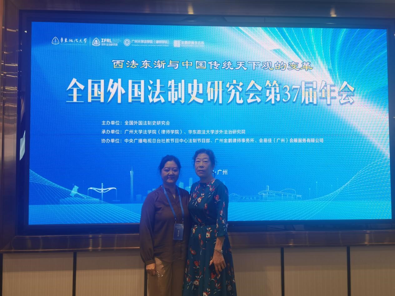 2024年11月16日至17日,由全国外国法制史研究会主办,广州大学法学院(律师学院)和华东政法大学涉外法治研究院共同承办,中央广播电视总台社教节目中心法制节目部、广州金鹏律师事务所协办的全国外国法制史研究会第37届年会在广东省广州市召开,我院韩月香教授和淡乐蓉教授应邀提交了参会论文,并参加了会议。来自全国多所高校和研究机构的240多位学者出席了本次会议。