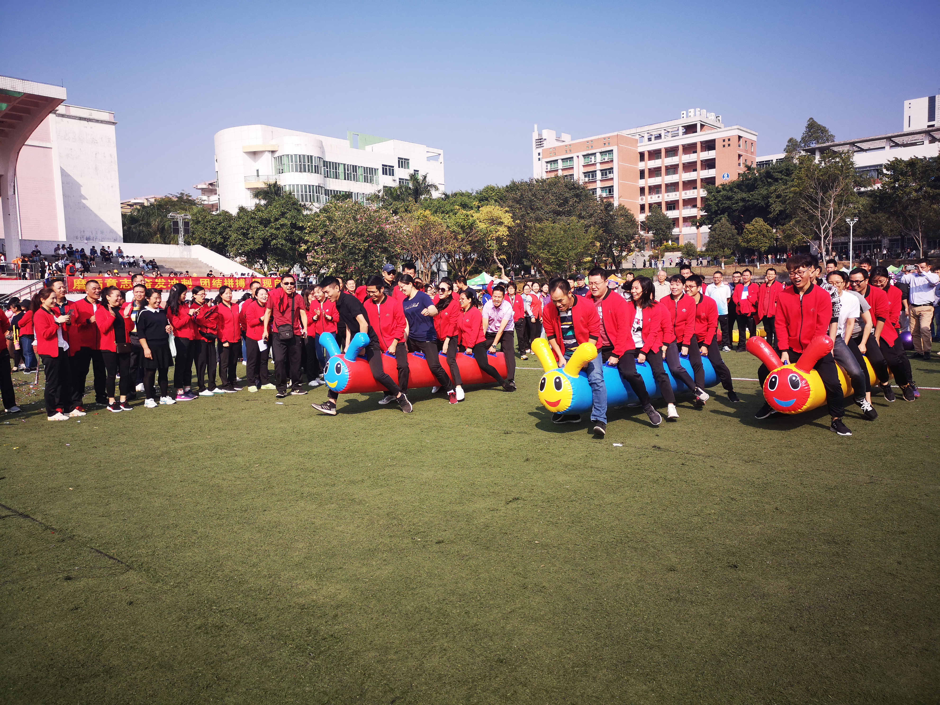 为庆祝新中国成立七十周年,贯彻落实全民健身计划,丰富教职工的业余生活。2019年11月14日上午,学校教职工趣味运动会于田径运动场拉开了序幕,各院系和机关部门共11支参赛队伍400多名教职工积极参加了本次趣味运动会。
