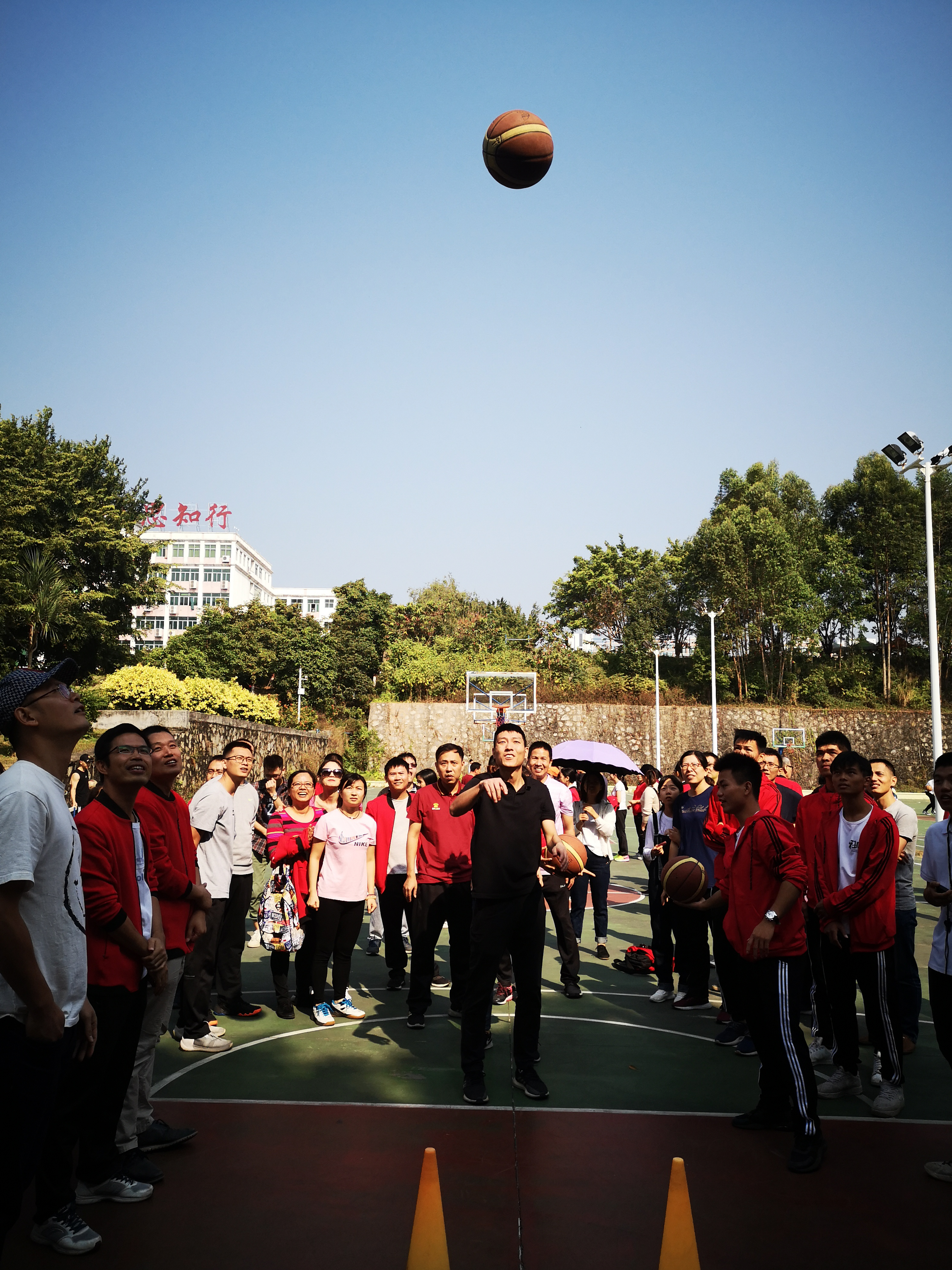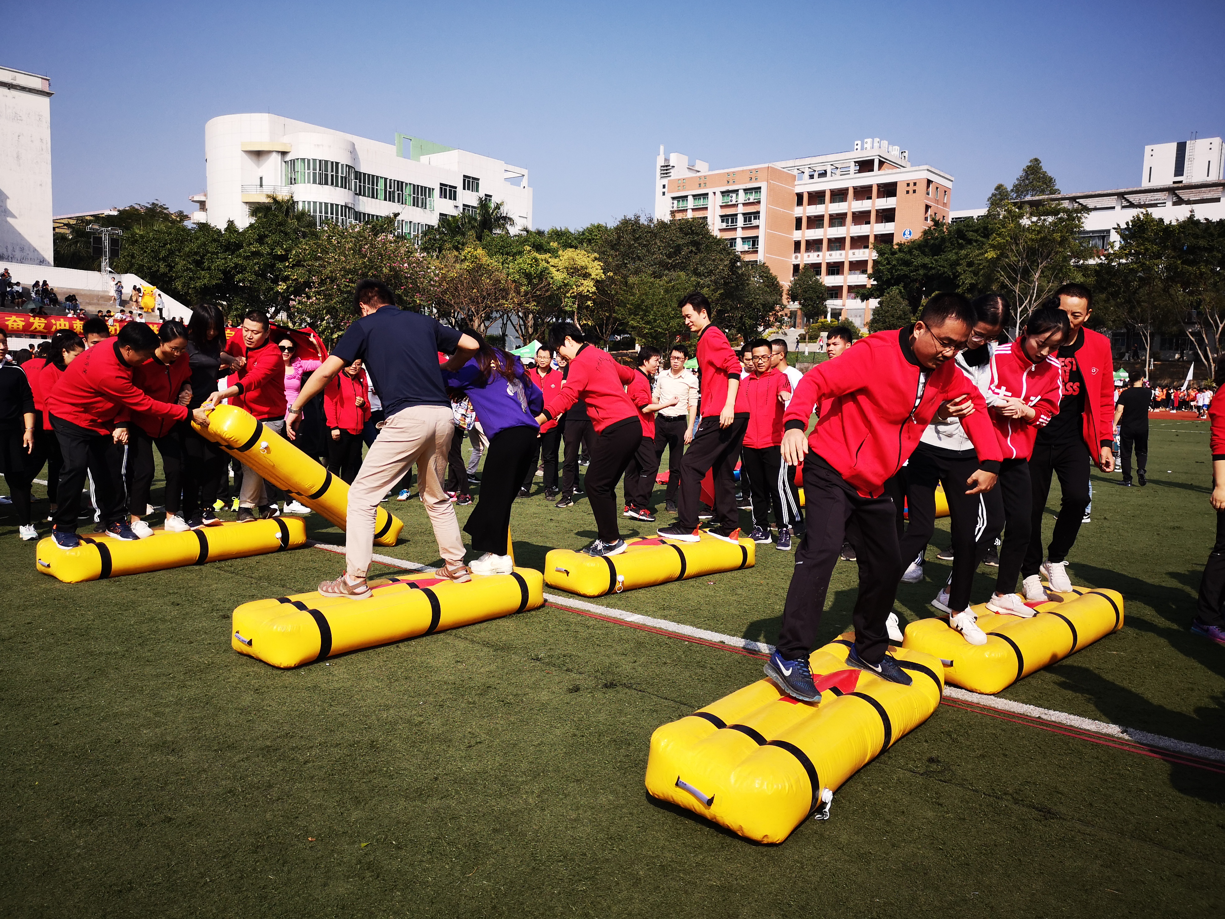 本次趣味运动会共有 “龙行天下”、“同舟共济”、“众星捧月”、“投篮接力”4个团体项目和 “跳绳”、“足球射门”、“托