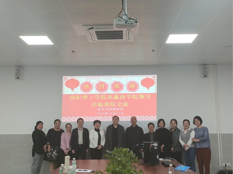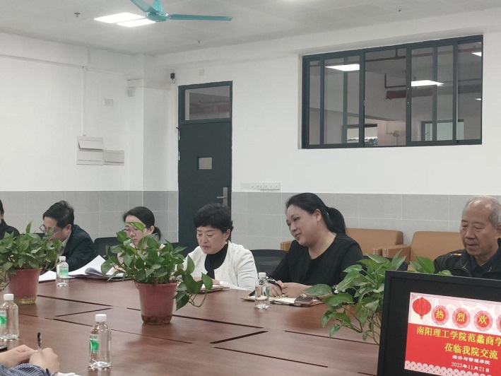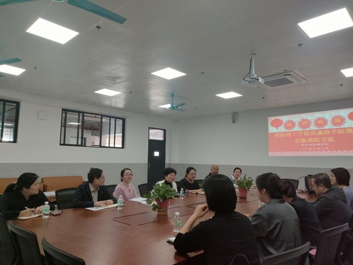 为深入研究OBE理念在人才培养方案中的制定方法与实施过程,创新学科专业人才培养新模式,2023年11月22日,南阳理工学院范蠡商学院副院长吕晓军教授带领学院骨干队伍一行5人莅临我院进行考察交流。我校经济与管理学院院长王亚新、副院长庹兰芳、副院长邱丹平、学院办公室主任管妙娴以及各教研室负责人共同出席了交流会议。