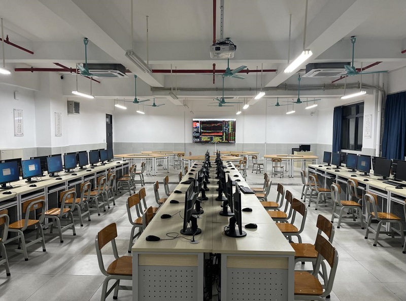 本专业建设3个实验室:(1)金融综合实验室,属于教学基础型实验室,配备完善的实训教学软件,如智胜金融实战平台、证券投资的同花顺、期货投资的文华财经、计量经济学的Stata;(2)商业虚拟仿真运营中心,通过跨专业综合实践教学平台、跨专业综合实践AR情境教学平台,推进金融科技、金融学、国际经济与贸易等专业学科的交叉融合;(3)数智金融创新实验室,依托大数据金融、区块链金融、虚拟仿真为支撑的实验教学平台,让学生掌握比特币工作原理、矿机挖矿、打包区块等金融科技前沿知识。