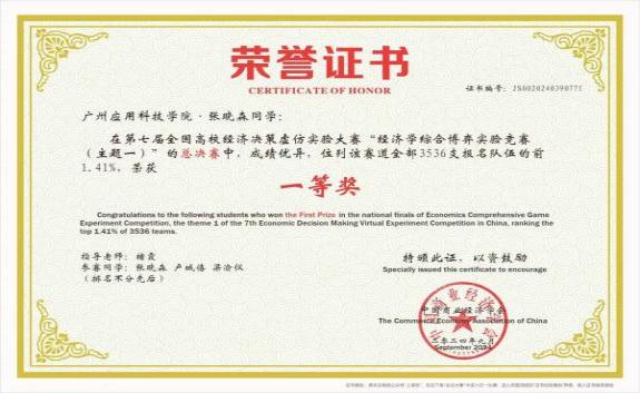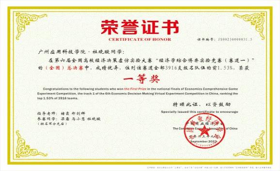 第六、七届全国高校经济决策虚仿实验大赛国赛一等奖