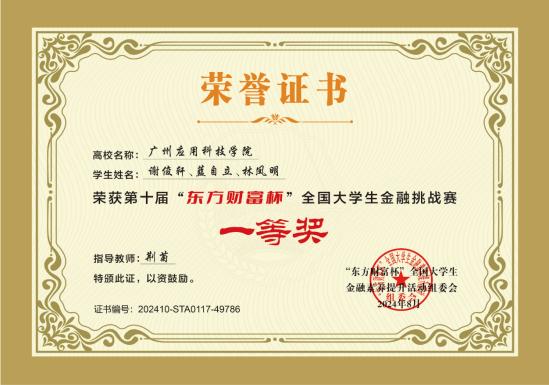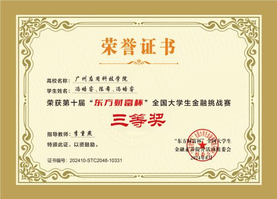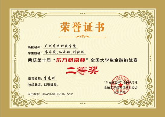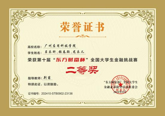 第十届“东方财富杯”全国大学生金融挑战赛国赛一等奖、二等奖、三等奖
