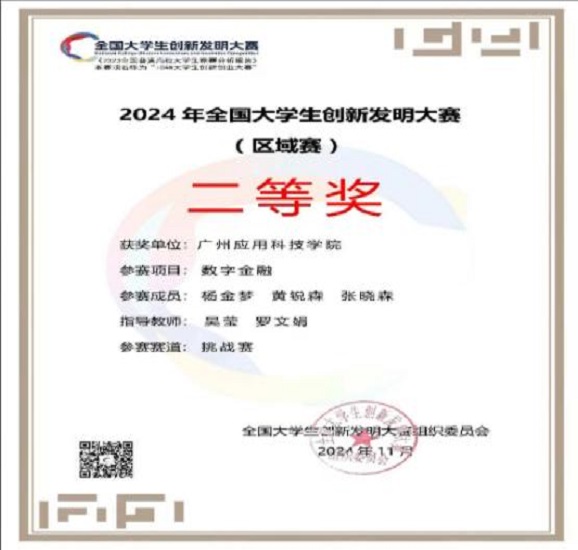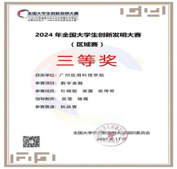 全国大学生创新发明大赛数字金融挑战赛二等奖、三等奖