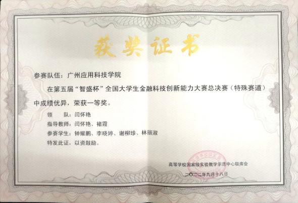 参加“智盛杯”全国大学生金融科技创新能力大赛