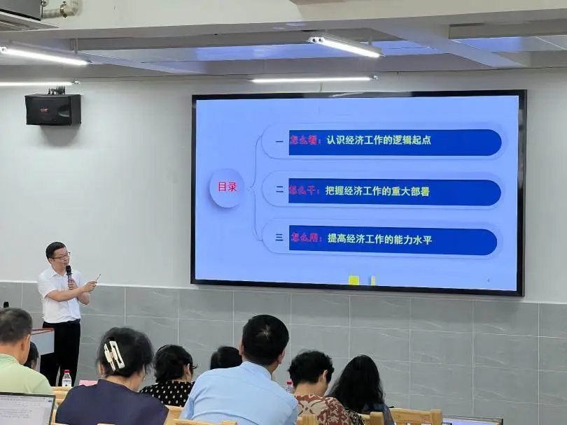 最后,经济与管理学院副院长邱丹平总结指出,康达华副教授给我们带来了一场思想深刻、内容丰富、论述精辟的精彩讲座。这既是一次理论学习的“深度充电”,也是一次实践思考的“精准赋能”。全体教职工应以此次学习为契机,持续深入学习领会,将其精髓要义内化于心、外化于行,切实融入日常的教学、科研、社会服务等各项工作中,把思想伟力转化为推动高质量发展的生动实践,为构建新发展格局、推进中国式现代化贡献力量。