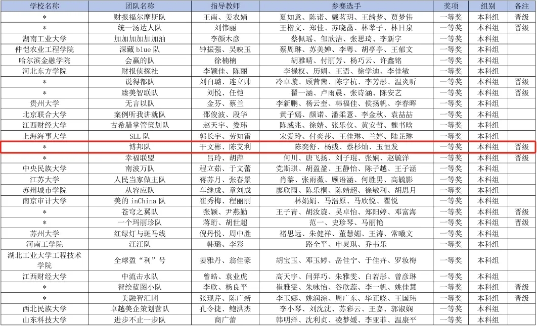 全国高校商业精英挑战赛会计与商业管理案例竞赛全国总决赛获奖名单