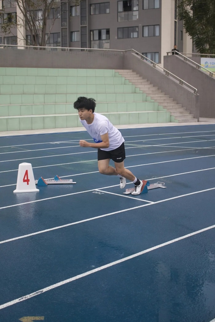 跑道之上,是风驰电掣的竞技时刻。经管学子弓步凝神,发令枪响后化作离弦之箭,肌肉的线条随冲刺节奏绷紧,耳畔呼啸的风声与场边呐喊交织,每一步都踏向更快的目标,定格下青春无畏的冲刺姿态。