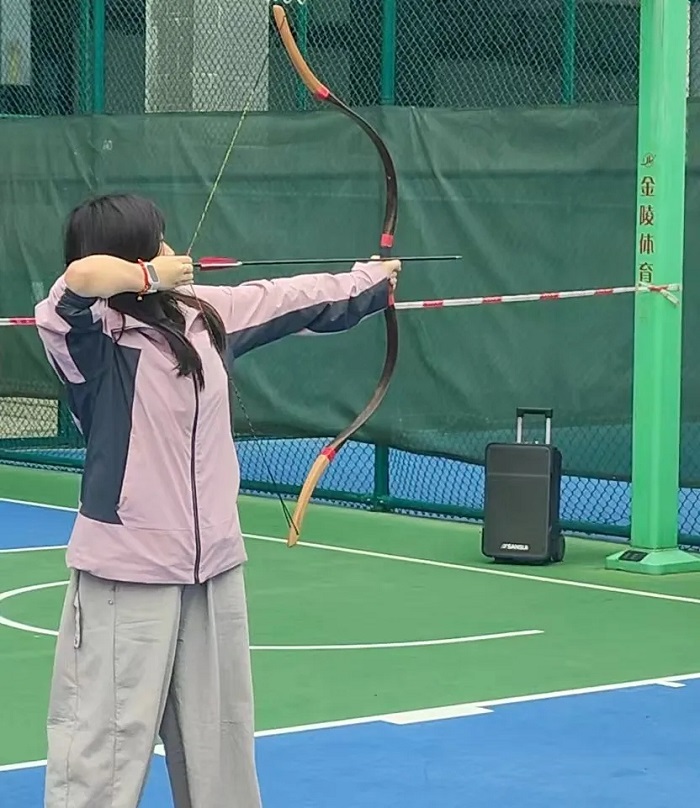 射箭赛场,则是“静与力的完美平衡”。从屏息瞄准的沉稳,到羽箭离弦的果决。每一箭都凝聚着专注,每一次调整都展现着不骄不躁、精益求精的治学风范。