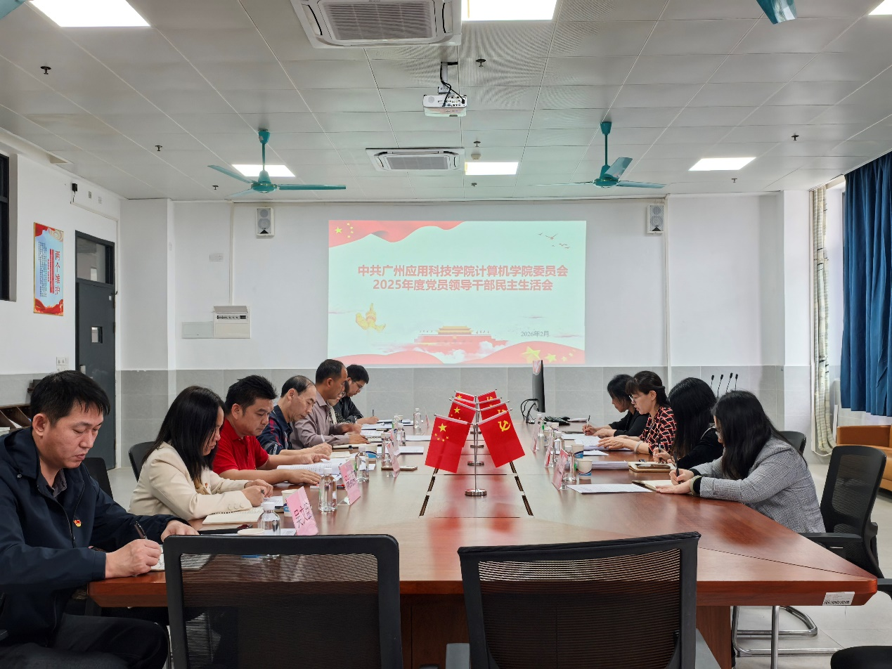 2026年2月27日,中共广州应用科技学院计算机学院委员会2025年度党员领导干部民主生活会在肇庆校区格致楼S1-714召开。校长助理李根珍到会指导并作讲话,学院党委书记周育山主持会议,学院党委委员、党员院领导参加会议,非党员院领导列席会议。