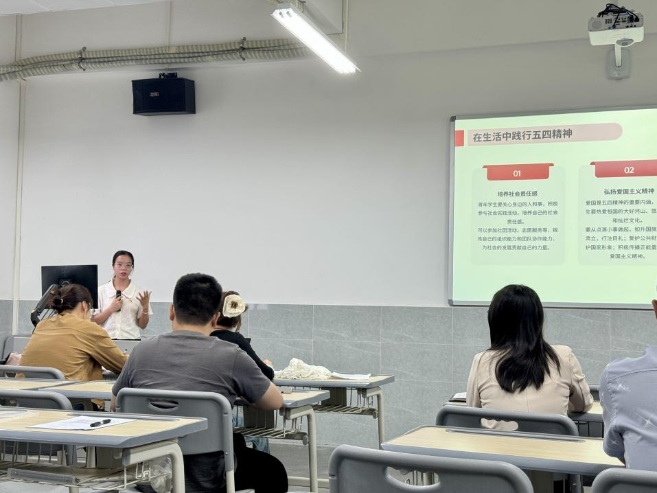 赵惠仪老师以“传承五四精神,勇担时代使命”为主题,以“爱国、进步、民主、科学”五四精神为主线,结合当代青年使命,强调青年需“以爱国为底色”,并提出行动的具体路径,鼓励青年在国际舞台传播中国文化,展现担当。