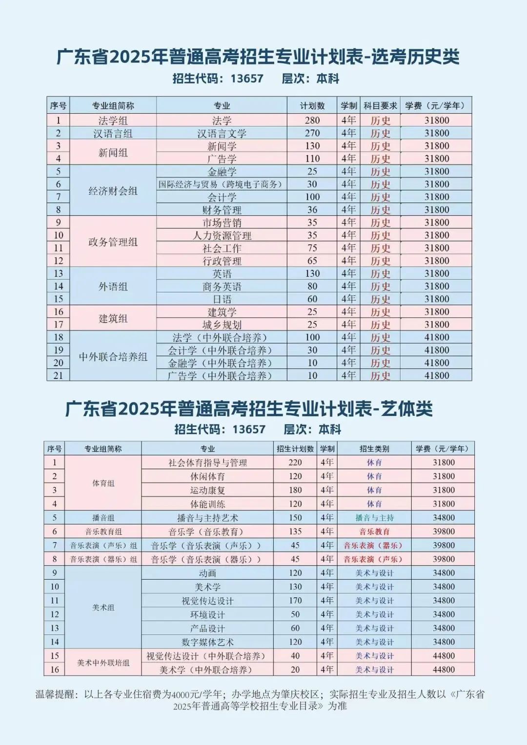 2025年,我校共有50个招生专业,涵盖经济学、法学、教育学、文学、工学、管理学、艺术学等七大学科门类。在广东省内的普通历史、普通物理、美术与设计、播音与主持、音乐、体育等类别均有招生。