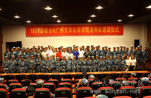 当天,广州市水上运动管理中心党委书记、广州市龙舟协会主席杨英华,广州大学松田学院党委副书记李金飞,广州市龙舟协会秘书长古应广,广州市帆船协会秘书长刘广辉,广州市壹玖柒捌游艇会管理有限公司总经理叶志军,以及松田学院社会体育系主任张军教授出席了选拔仪式。
