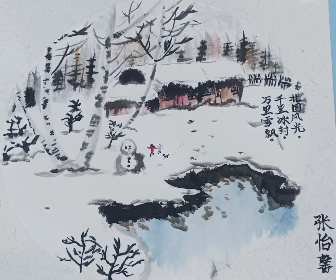 团队成员周永逸挖掘了美术史里的中国故事,深入讲解《清明上河图》和《千里江山图》的历史和创作,并通过粘土表现新形式宏伟的《千里江山图》,让学生发现中国画“诗书画印”的特色,以此发现中国文化之美,文字之美。团队成员杨蓓蓓则巧妙地从“中国书法”入手,从“书法文化的起源”讲到“文房四宝”,通过书法练习,学生们更加熟悉汉字的结构、部首和笔画。杨蓓蓓还带领同学们将符合国画意境的诗词,用毛笔字的形式题字到国画作品上,最终完成一副有字有画的国画作品。团队成员周永逸带领同学们认识锦灰堆及其发展历史,围绕文字构图形式,选用同学们自己名字的书法外形,利用多种素材在画面上进行粘贴。这节课既让同学们进一步认识了汉字的构成与书法的结构,又了解字的新艺术表达方式。