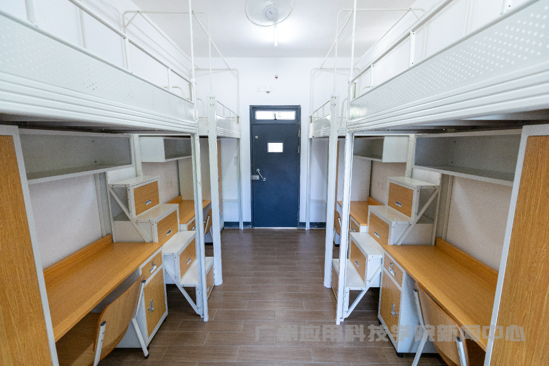 8月9日开始,2023年普高新生可以通过官微线上进行学费缴费,并通过“广应科校园服务”微信服务号在线进行选择宿舍及床位。宿舍内部配置均为统一的四人间。学思苑学生公寓整洁舒适,简约大气的外观和独具匠心的建筑设计给予人一种柔和的视觉观赏性。