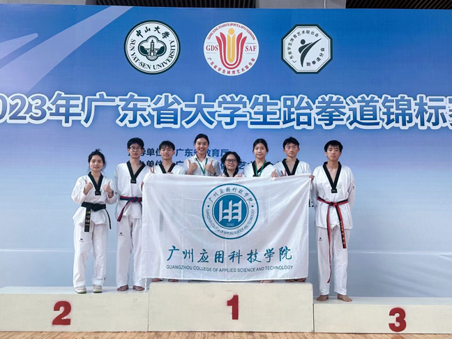 本次比赛广州应用科技学院跆拳道队共派出10名运动员参加甲组、乙A组的竞赛,在领队张军院长、刘情和陈青彪两位教练的率领和指导下,经过五天的激烈角逐,我校最终获得2个第二名、1个第三名和4个第五名。