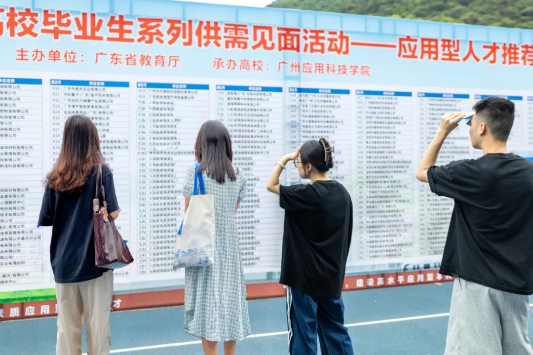 为进一步服务全省经济建设,精准对接用人单位需求,全力搭建“百万英才汇南粤”的优质就业平台,助力2025届毕业生顺利完成从校园到职场的关键跨越,5月16日,由广东省教育厅主办、广州应用科技学院承办的“粤就业”广东省 2025 届普通高校毕业生系列供需对接活动——应用型人才专场招聘会,在广州应用科技学院肇庆校区运动场举行。值得一提的是,这场招聘会也是省教育厅今年主办的唯一一场高校毕业生应用型专场招聘会,体现了广应科在应用型人才培养的持续发力,以及在学生就业领域的责任担当。