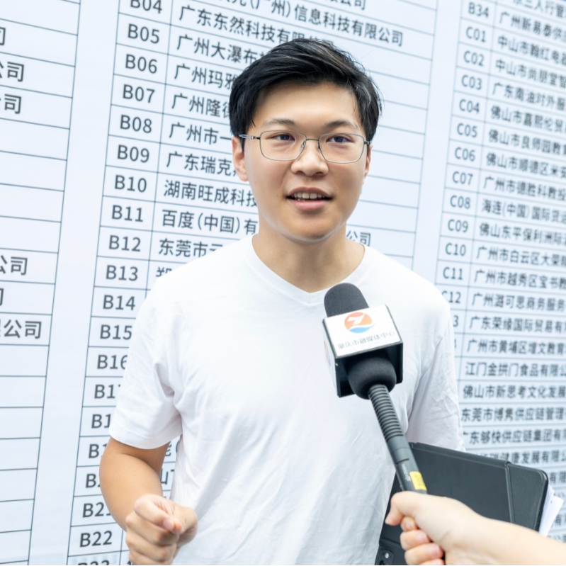 招聘会现场,颜梓杰将目标锁定在传媒实习岗。他此前在广东广播电视台、羊城晚报等媒体单位有过实习经历,这成为他参加招聘会面试的底气来源。此次参会,颜梓杰希望通过与不同企业面试官交流,进一步锻炼自己的临场应变与沟通表达水平。另一方面,他期待能够前往广州开启实习生活,以接触更前沿的传媒理念。同时,颜梓杰也展现出开放的态度,愿意发挥自身专业特长,积极投身于肇庆当地文化传播、品牌推广等领域,为肇庆的发展贡献一份力量。