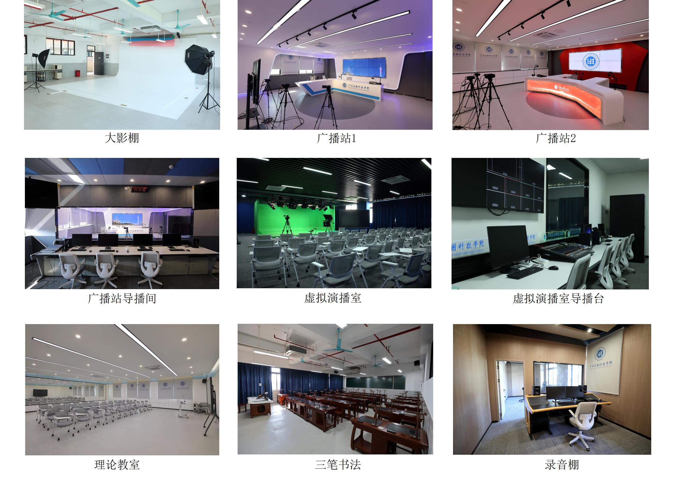 学院拥有良好的教学环境和先进的教学设备,现有4K高清虚拟演播室1间、摄影理论教室1间、摄影实践教室1间、独立摄影棚6间、融媒体工作室1间、数字化网络直播实验室3间和非线性编辑实验室1间。除此之外,拥有专业摄像机30余台,以及各式无人机、运动相机、稳定器、摄影灯具等。学院还在省内外建立了多个实训、实习基地。过硬的办学条件,有效满足了各专业教学需要,为学生专业知识和应用能力的培养提供了理想的平台。