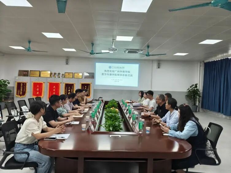 为了进一步强化校际合作,深化教学改革,广州华商学院数字传播学院与我院进行了交流学习,旨在构建两院之间专业交流的桥梁,通过深入的探讨与相互学习,推动双方在专业建设、教学理念、课程设置、师资培养、实践教学等多个维度实现深度融合与协同发展。2025年5月28日下午16:00,广州华商学院数字传播学院院长张晋升、副院长王健、院长助理侯兆丰、新闻系主任潘晓慧、口语传播系主任张巨红、网络与新媒体系副主任邵泽宇、广告系主任助理苏洁一行7人莅临我院进行交流访问。我院党委书记、院长赵金钟、党委副书记、副院长李妙芝、新闻系主任钟远、以及我院四位骨干教师莫逸轩、黄俊滔、陈柯岐、司粉瑜参与本次交流会。