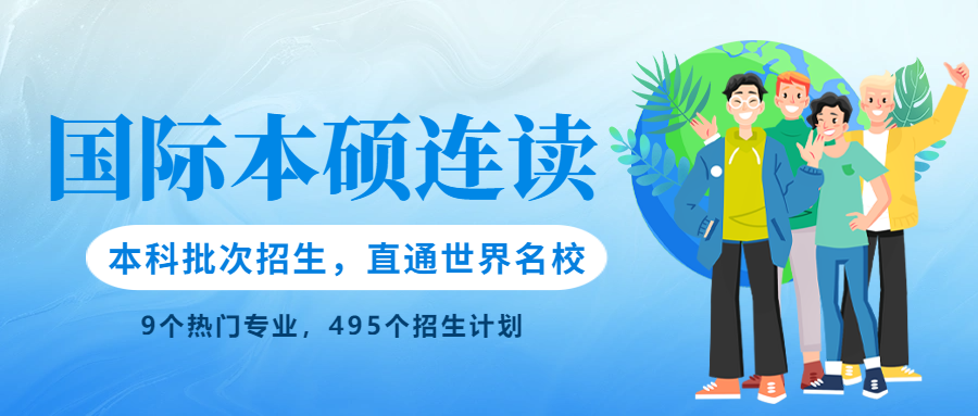 高考本科批次招生本硕连读 直通世界名校,学历全球认可 多元课堂赋能,跨国实践锤炼 为你架起一座通向世界的桥梁 书写独属于自己的国际化成长篇章