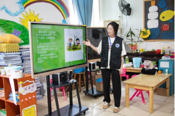 紧接着,课程进入“绿植未来”主题宣讲环节。我院志愿者们为在场的小朋友们准备了纸和画笔,鼓励他们尽情挥洒创意,用画笔描绘出心中的未来绿色世界。一幅幅充满童真与创意的画面跃动于纸上,无一不展现出小朋友们对绿色环保的热爱与憧憬。除此之外,志愿者们通过PPT向小朋友们普及植树节的由来,带领他们深刻了解这一节日的背景和意义,同时激发他们对环境保护的兴趣和责任感。志愿者们掷地有声的倡议也让孩子们意识到,保护环境是每个人的责任,他们也可以通过自己的环保行动为地球家园贡献一份力量。