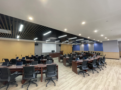 英语专业拥有良好教学环境和先进教学设备,有智慧同传实训室、口语与演讲实训室、计算机辅助翻译实训室,配备国内最先进教学软件和双语语料库。配备专业语言实训室、翻译实训平台、多媒体语音教室,满足口语、写作、翻译、口译等教学技能的全流程实训需求。