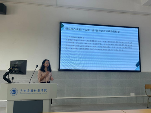 本周二下午,外国语学院英语系谢芳老师在J2-101教室开展《英语演讲》课程思政实践路径研究结项汇报。项目历时三年,构建“五维一体”课程思政模型,涵盖内容融合、方法创新、评价重构等维度,项目成果包括:发表2篇论文,修订教学大纲,督导对课堂教学评分优秀,学生在“外研社国才杯”演讲比赛中获省级三等奖,团队教师评教均超95分,课堂实录显示学生脱稿演讲能力与家国情怀显著提升。专家指出,该成果已纳入英语专业课程推广,形成可复制的“广应科”思政育人范式,为外语课程思政建设提供实践样本,具有区域示范意义。