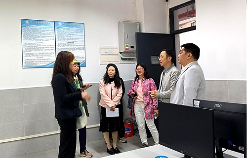 学校领导对此次访问也非常重视,广州应用科技学院党委书记陈光团亲自率外国语学院参会人员陪同来访嘉宾参观了学校校园和图书馆,了解我校的校园整体规划、文化建设等。