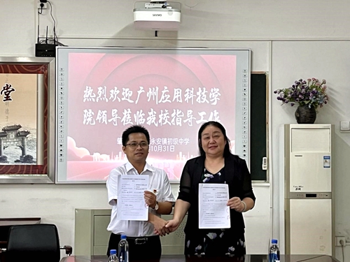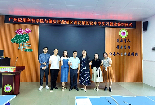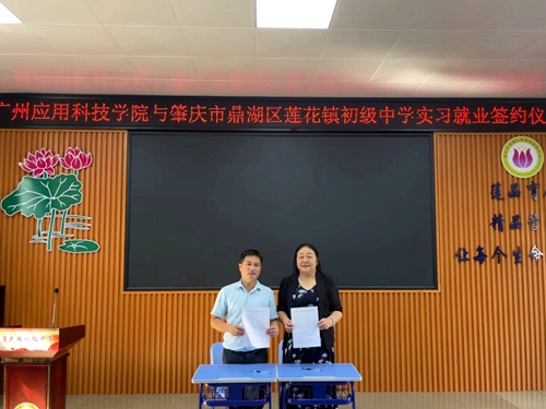 鼎湖区莲花镇初级中学,原为莲塘中学,创办于1968年,1991年迁至现校区,先后被评为“广东省义务教育规范化学校”、“鼎湖区教书育人先进单位”等荣誉称号。莲花镇初级中学陈有巧校长等热烈欢迎单新荣院长一行人,陈校长表示,远亲不如近邻,希望加强两校的合作以及实习实践基地的共建。单院长表示两校交流合作的深化将共同促进鼎湖区教育事业的发展。经过研讨和协商,双方达成共识,签订了共建实习基地的协议。