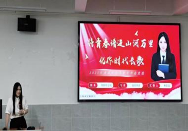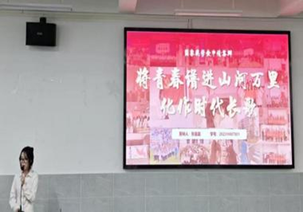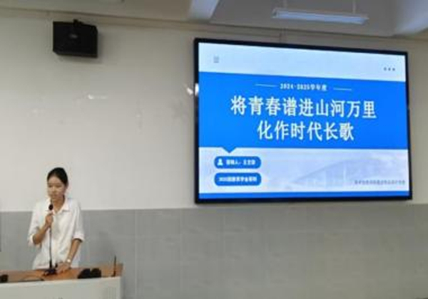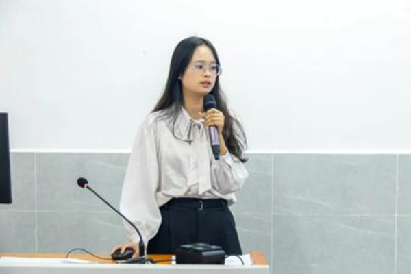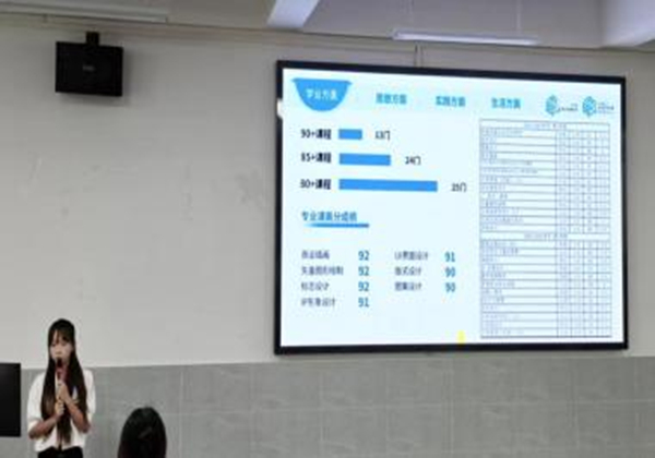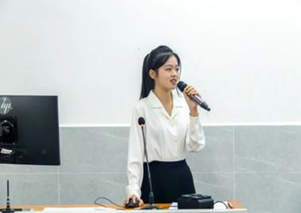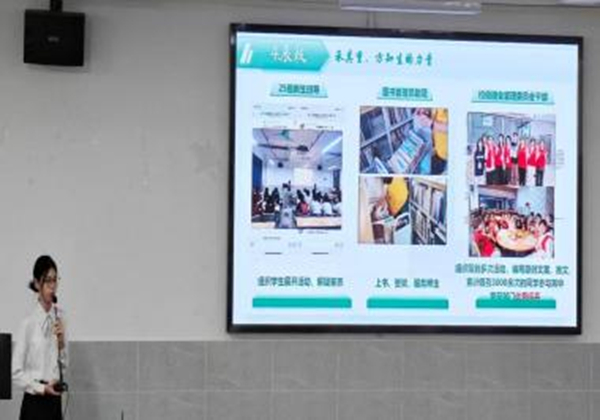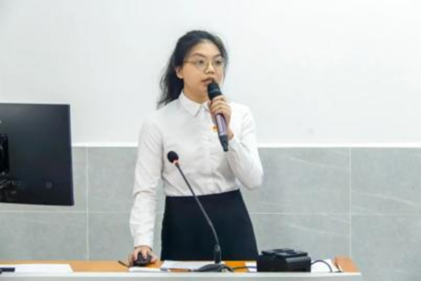 评委老师就“学业转化为实践”方面对其提出问题,她表示会将所学的专业知识与自身的社会实践相结合,达到实践与工作能力的提升。