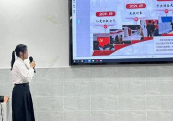评委对其“党建工作”方面展开提问,他表示自己曾不断学习党建相关知识和工作内容,从确定为入党积极分子到确定为党员身份,一路走来他也表示要不断向党建的师兄师姐学习与交流,通过实践实习落实为人民服务这一宗旨,这也将激励他不断迎难而上。