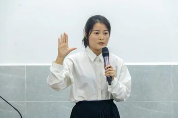 评委老师就“大学生就业”方面对其提出问题,她表示要勇敢踏出第一步,不要畏惧每个“第一次”,遇到困难不放弃,培养试错精神,勇于尝试的精神帮助她得到更丰富的就业经历。