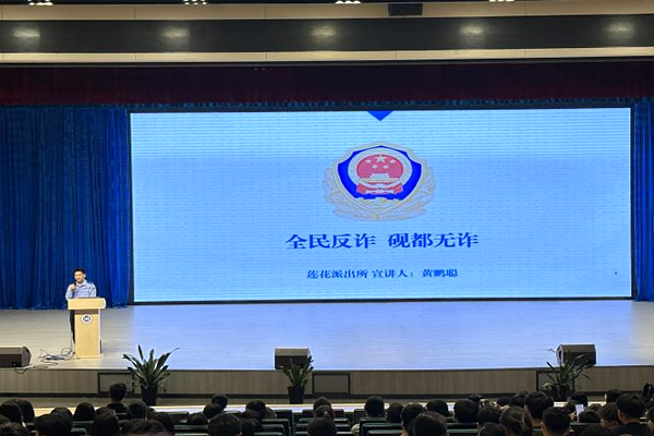 会议伊始,党委保卫工作部周老师表示,本次反诈宣讲会邀请了莲花镇派出所黄警官作为宣讲人,黄警官将从诈骗的定义和受骗案例等方面向大家进行反诈宣讲,该宣讲会具有非常深刻的反诈教育意义,在场的各位同学应保持安静,认真聆听,学习反诈知识,加强自身的反诈意识。