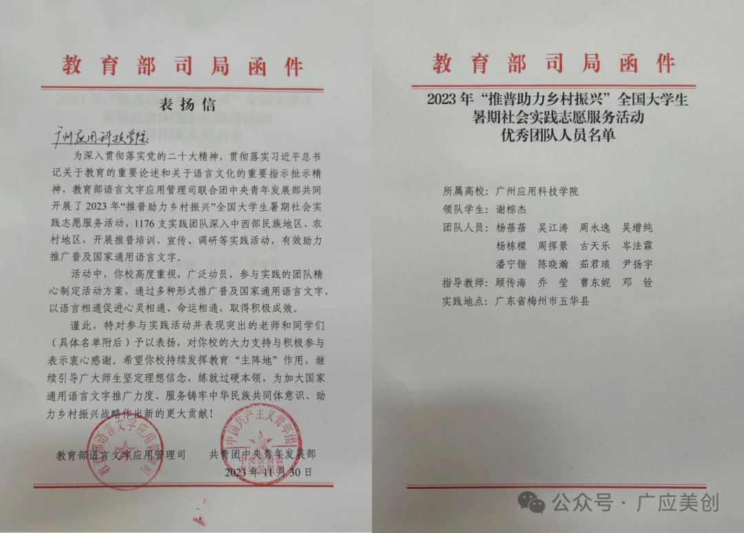 近日,教育部和团中央向我校发来表扬信和感谢信,特对我校参与教育部2023年“推普助力乡村振兴”全国大学生暑期社会实践志愿服务活动并表现突出的“融媒体”推普实践队予以表扬。