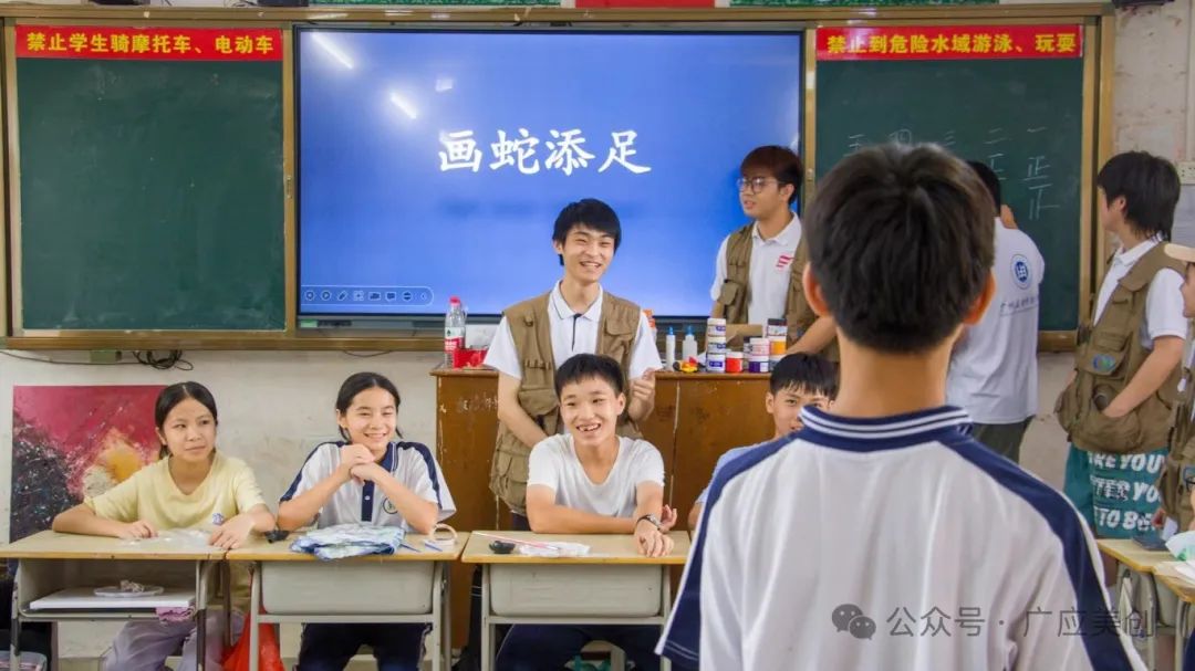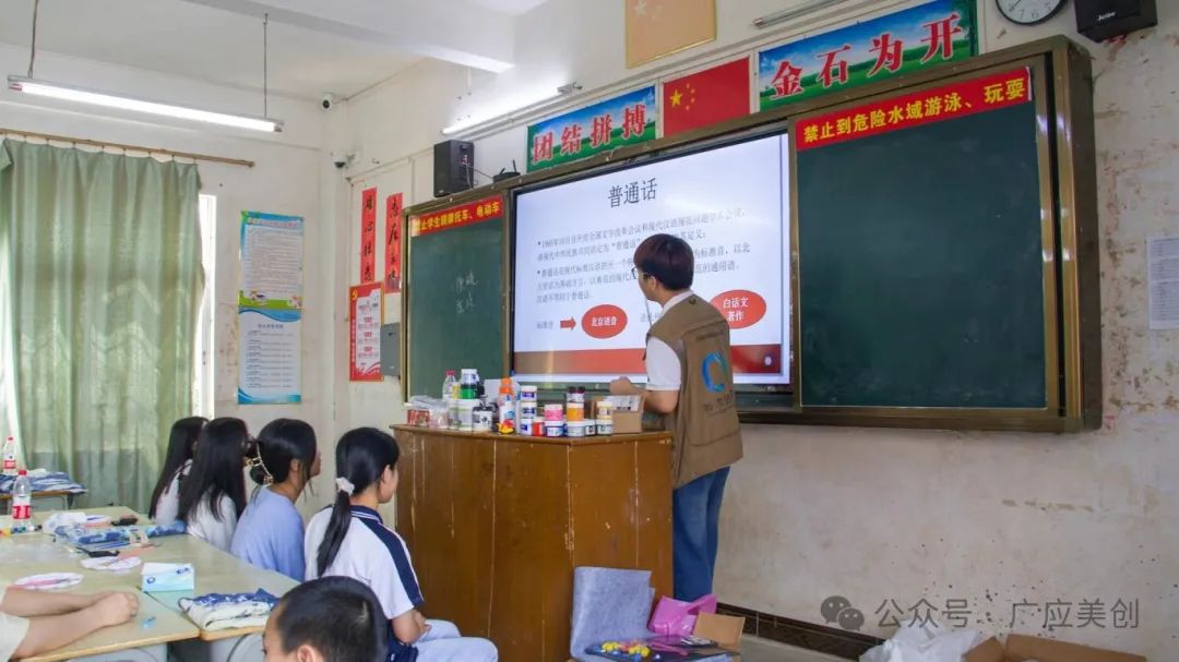 教育要从娃娃抓起,普通话推广重在青少年。在调研之余,“融媒体”推普实践队结合自己美术专业的优势,前往棉洋中学开展了一系列普通话推广课程。